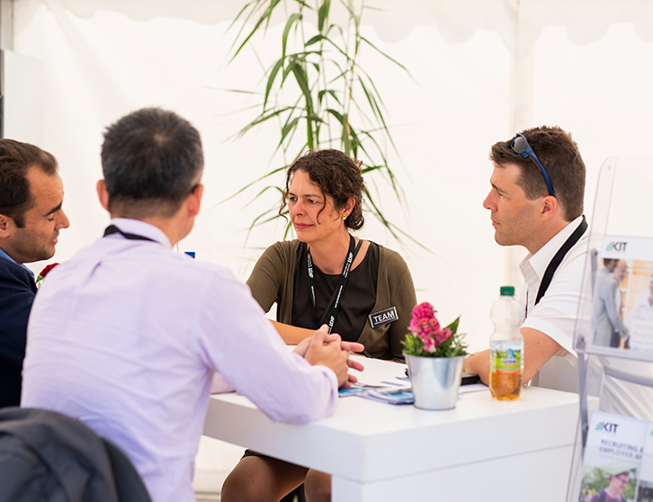 Zu den langfristigen Projekten gehören beispielsweise die Organisation von Themenveranstaltungen und die Erstellung sogenannter ‚Research Matching Reports‘ für unsere Mitgliedsunternehmen. Deren Vorbereitung macht einen wesentlichen Teil unserer Arbeit aus. Für die Reports tauschen wir uns zu Suchfeldern mit den Unternehmen aus, dann beginnt die Recherchephase für uns am KIT. Wir erstellen einen Report daraus und präsentieren diesen und das gesammelte Wissen den Firmenrepräsentanten, ggf. organisieren wir darauf aufbauende Meetings oder Besuche an den Instituten und Laboren des KIT. Der ganze Prozess erstreckt sich je nach Themenumfang über mehrere Monate.