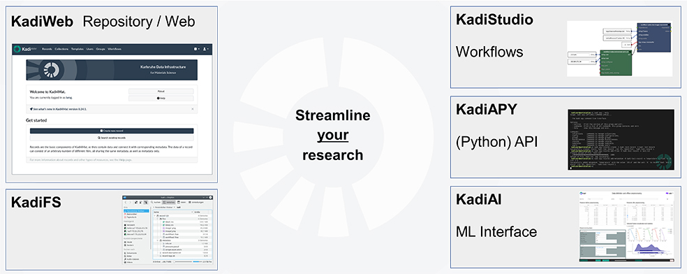 „Mit Kadi4Mat schaffen wir eine Infrastruktur, die den gesamten Forschungsprozess dokumentieren und automatisieren kann. Sie kombiniert ein ELN der nächsten Generation mit leistungsstarken Schnittstellen, die für maximale Flexibilität und Interoperabilität sorgen“, fasst Entwickler Selzer zusammen und betont: „Wir wollten keine weitere Insellösung erschaffen, sondern eine offene und erweiterbare Plattform anbieten, die in der universitären und industriellen Forschung anwendbar ist.“ Ursprünglich für die Materialwissenschaft konzipiert, hat sich die Open-Source-Plattform zu einem modularen Baukasten entwickelt, der individuell an die Bedürfnisse von Nutzenden angepasst werden kann. Neben der Kernkomponente KadiWeb gibt es verschiedene spezialisierte Module, wie KadiStudio für das Workflow-Management oder KadiAI für maschinelles Lernen, die unterschiedliche Bedarfe adressieren und kombinierbar sind. Die Basis bildet das Dateisystem KadiFS, das mit den Laborgeräten verbunden ist und so nahtlos Daten ohne weitere Anpassungen der Software speichern kann. „Man muss nicht alles nutzen, aber man kann. Mit offenen Schnittstellen und modularen Features ist Kadi4Mat beliebig umfangreich einsetzbar – von der einfachen Dokumentation bis hin zu komplexen maschinellen Lernprozessen. Unser Ziel ist es, eine Plattform zu schaffen, die nicht nur Lösungen für heutige Anwendungen bietet, sondern auch zukunftsfähig ist“, betont Selzer, einer der führenden Köpfe hinter Kadi4Mat. „Wir legen dabei großen Wert auf die Software-Dokumentation. Die Nutzerinnen und Nutzer sollen in der Lage sein, individuelle Bedarfe über die entwickelten Programmierschnittstellen zu bedienen. Dies ermöglicht vielfältige und flexible Einsatzmöglichkeiten sowie einen hohen Automatisierungsgrad“, berichtet Selzer aus Entwicklerperspektive.