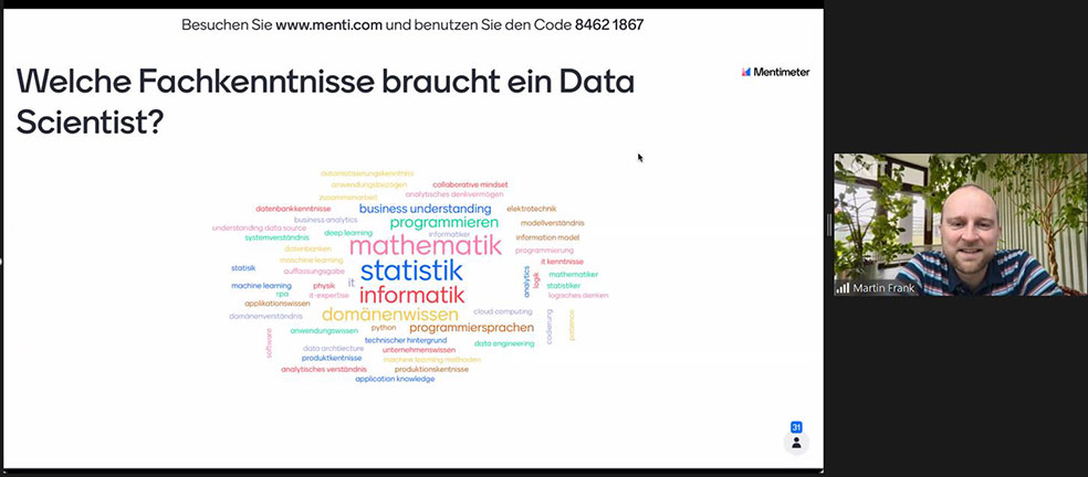 - Die Beispiele für angewandtes Machine Learning von Prof. Ralf Mikut (Institut für Automatisierung und Angewandte Informatik (IAI)) kamen aus ganz unterschiedlichen Anwendungsfeldern, wie Life Science und Industrie 4.0. Er zeigte, dass der grundlegende Data-Science-Ansatz jeweils ähnlich funktioniert, dass domänenspezifisches Wissen allerdings entscheidend für einen sinnvollen Einsatz der Technik ist.