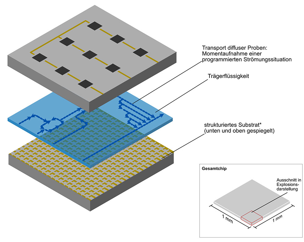 In der Anwendung sehe ich die Plattform als Schnittstelle zwischen chemischen und digitalen Informationen. Chemische Informationen, beispielsweise DNA, Hormone oder Materie, sind oft in flüssiger Lösung zu finden und so für den Chip einfach zu verarbeiten. Die Idee ist, diese in digital zu verarbeitende Informationen umzuwandeln, die mit einem Rechner gelesen und verarbeitet werden können.