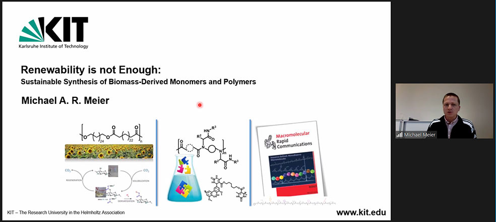 - Materialien aus nachwachsenden Quellen verringern beispielsweise den ‚carbon footprint‘ von Produkten. Dabei können viele dieser Materialien inzwischen hinsichtlich ihrer Performance mit gängigen Werkstoffen mithalten und zu nachhaltigeren Endprodukten führen. Prof. Michael Meier vom Institut für Organische Chemie (IOC) hat Herstellungsverfahren für eine Reihe von nachhaltigeren Kunststoffen entwickelt. Er betont: „Wichtig ist, dass für die Nachhaltigkeitsbetrachtung immer der gesamte Prozess mit allen Abfallprodukten und Energieströmen berücksichtigt wird und dabei die Wirtschaftlichkeit darstellbar bleibt“.
