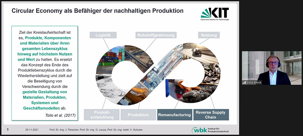 Nachhaltig zu produzieren bedeutet, Güter ressourcenschonend herzustellen und die Regenerationsfähigkeit der natürlichen Ressourcen dabei zu erhalten. Das oberste Ziel hierbei ist, die Lebensgrundlage für zukünftige Generationen zu sichern. Deshalb werden von den Konsumenten verstärkt Produkte nachgefragt, die mit geringem Rohstoff- und Energieeinsatz hergestellt werden. Im KIT-Business-Club kommen solche Entwicklungen auch direkt an. „Die Anfragen von Mitgliedsunternehmen zu nachhaltigen Technologie-Entwicklungen aus dem KIT nahmen dieses Jahr stark zu“, erläutert Dr. Markus Bauer, der Leiter des Netzwerks. „Eine resiliente Rohstoffversorgung und effiziente Ressourcennutzung spielt für viele Industriebranchen eine immer wichtigere Rolle“, betont Prof. Dr. Thomas Hirth, Vizepräsident des KIT für Innovation und Internationales und Sprecher des THINKTANK Industrielle Ressourcenstrategien. Beim Thementag „Nachhaltige Produkte und nachhaltige Produktion“ des KIT-Business-Clubs am 25. November 2021 gingen die Referierenden und Teilnehmenden einigen der Herausforderungen und neuen Lösungen nach.