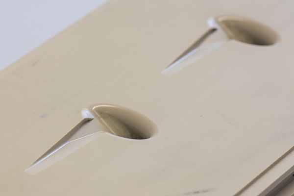 Forschende des Instituts für Thermische Strömungsmaschinen (ITS) verbessern die Aerodynamik in der Bohrung insgesamt, indem sie die kühlluftseitige Eintrittsgeometrie verändern. Hierfür wird ein sogenannter NACA-Einlauf (National Advisory Committee for Aeronautic) mit einer zusätzlichen Verrundung der Kanten am Kühllufteintritt eingesetzt. Der NACA-Einlauf reduziert den Drall in der zylindrischen Bohrung, während die Verrundung für weniger Turbulenzen und eine geringere Strömungsablösung sorgt. Die veränderte Einlaufgeometrie führt zu einer gleichmäßigeren Strömung innerhalb der Bohrung und zu einer stabileren, symmetrischeren Kühlluftausblasung, wodurch die Kühlfilmausbreitung besser prognostizierbar ist.