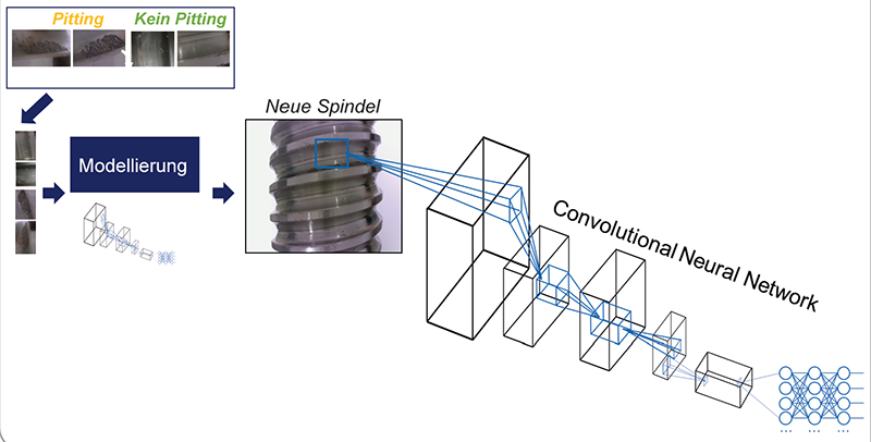 Bei der Zustandsüberwachung in der Produktion sind Schallsensoren, manuelle Sichtprüfungen und die bildbasierte Qualitätsbeurteilung technischer Standard. Beim sog. maschinellen Sehen werden zur Beurteilung von Bilddaten vorab definierte Regeln in die Anwendung einprogrammiert. Auf Basis dessen erfolgt die Kategorisierung zwischen einwandfreiem und fehlerhaftem Produkt. Ändern sich die zu beurteilenden Objekte, ist eine Neuformulierung und Neuprogrammierung der Regeln notwendig. Eine dynamische Adaption an veränderte Gegebenheiten findet im klassischen maschinellen Sehen nicht statt.