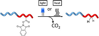 Ein alternatives, leicht durchführbares Syntheseverfahren haben Forschende vom Institut für Technische Chemie und Polymerchemie (ITCP) entwickelt. Bei dem Verfahren wird Ethylen nicht mehr direkt als Monomer eingesetzt, sondern ein Acrylsäureester. Dabei wird zunächst ein einstellbares Vorläuferpolymer (Precursor), ein Feststoff auf Acrylatbasis sowie gezielte Zusatzbaustein in Lösung synthetisiert. Mit der Ausgestaltung des Precursorsystems lässt sich bereits die spätere Struktur des Polymers festlegen. Der Precursor wird danach in einem katalytischen Prozess decarboxiliert. Durch diese Abspaltung von Kohlenstoffdioxid bleibt ein PE-Rückgrat übrig, das sich schließlich unter Zugabe eines Wasserstoffdonors zu funktionalisiertem Polyethylen umwandelt. Je nach Art des Zusatzbausteins ergeben sich verschiedene Blockcopolymere, wie z.B. Polystyrol-block-PE.