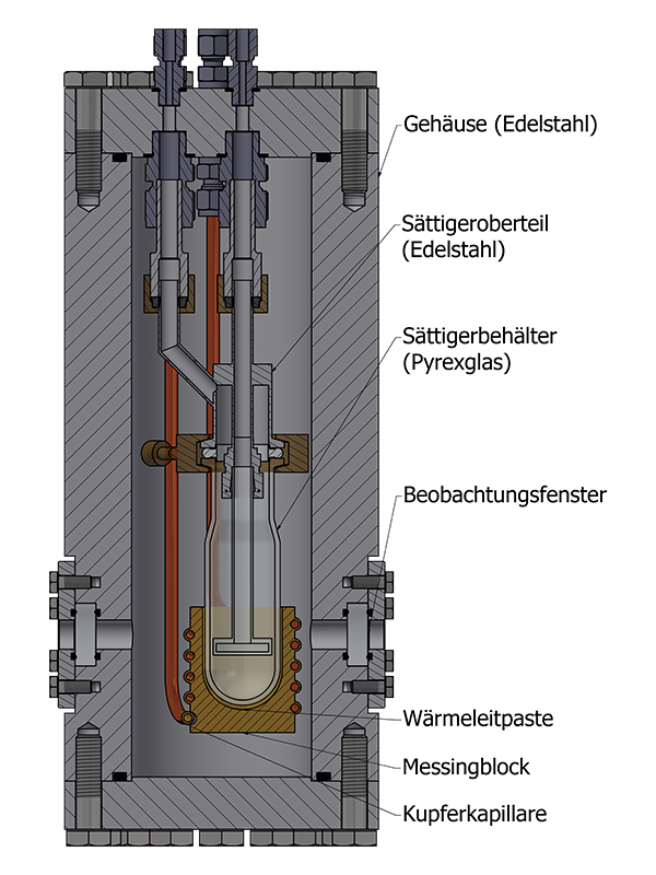 Kommerzielle Sättiger sind für gewöhnlich aus Edelstahl oder Glas gefertigt und meist für einen Druck von maximal 20 bar ausgelegt. Für verschiedenste Prozesse wären materialflexible und druckstabile Sättiger von Vorteil. Hier zeigen jedoch beide Varianten ihre Schwächen: Sättiger aus Edelstahl können bei höherem Druck betrieben werden, sind jedoch für stark korrosive oder katalytisch empfindliche Substanzen ungeeignet. Hier besteht das Risiko von Korrosionsschäden und Materialverunreinigungen im Prozess. Glasbehälter sind hingegen nicht druckstabil.