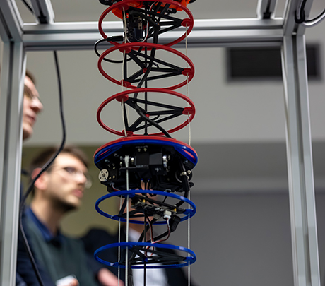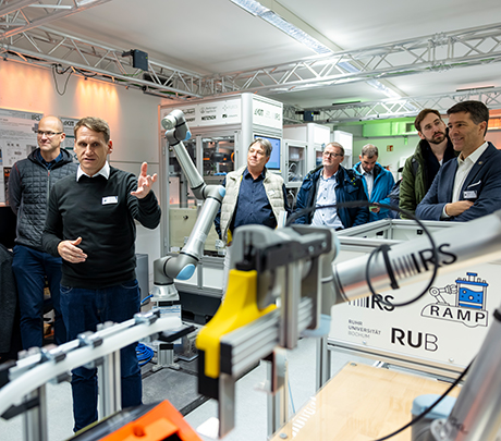 During the tour of the Cyber-Physical Robotics Lab, Prof. Dr.-Ing. Mike Barth gave guests an insight into the technologies of future production systems that could revolutionize the efficiency of production processes. (Photo: KIT)