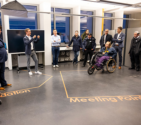Prof. Tobias Düser from the Institute of Product Engineering (IPEK) demonstrated what future engineering means for product development. According to Düser, the process is moving away from rigid waterfall processes toward flexible agile methods and ultimately DevOps approaches, which make it possible to involve customers throughout the entire process and incorporate direct feedback. He presented the integration of gamification, AI in requirements management and XR (extended reality), which enrich the development process in completely new ways. Participants experienced what this feels like during the subsequent tour of IPEK's XR Lab and Cyber-Physical Robotics Lab, where virtual and physical worlds merge and realistic development and testing environments are created. Düser's conclusion: Sooner or later, we will have to rethink the way we develop products.