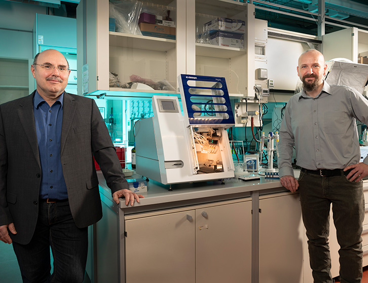 In the 2000s, KIT already applied for a patent for the process for automated handling of magnetic microparticles. "The efficiency of our process very quickly also convinced the company chemagen, which secured the rights of use from KIT," remembers co-inventor Prof. Franzreb. chemagen succeeded to parallelize and further accelerate the procedure and to optimize it for laboratory diagnostics, so that the biotechnology company launched the principle developed at KIT in their "chemagic™" systems. The developed devices were quickly successful with the chemistry developed by PerkinElmer chemagen and have established themselves as a globally used system for the isolation of nucleic acids from a wide variety of samples (blood, saliva, swabs, plasma, serum). In 2011, chemagen was acquired by PerkinElmer, Inc. and the license was sold with it. More than 900 chemagic™ 360 instruments were sold worldwide in 2020, and the market share of sample preparation in Germany was approximately 25 percent.