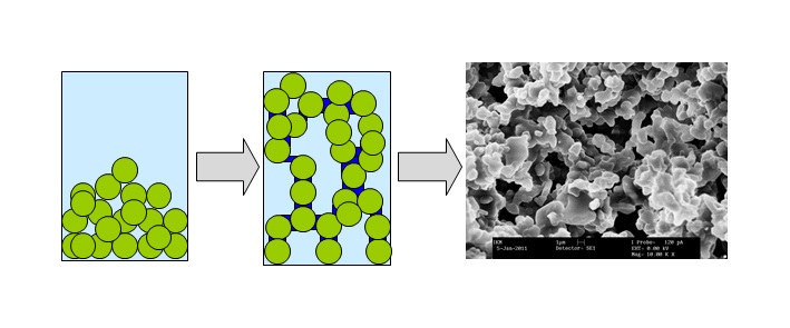 Porous ceramics are used as filters in water or waste gas treatment, as catalyst carriers and medical implant materials, and in various other applications. Conventional methods for porous-ceramics manufacture e.g., the replica technique or the placeholder method, in certain respects may have significant disadvantages for product manufacturing processes or material properties. Particularly very fine porous ceramics whose pores are smaller than ten micrometers can either not be manufactured at all using such techniques or else are of bad quality or cumbersome to fabricate. Moreover, there are further disadvantages e.g., increased production costs or toxic process gases, that maximize the demand for alternative production methods for macroporous ceramics. A new method developed by Institute for Mechanical Process Engineering and Mechanics (MVM) has the potential of enabling a low-cost, relatively simple manufacture of ceramics with pores sized 0.1 to 100 micrometers for the mass market. The method is based on the use of capillary suspensions consisting of one solid and two immiscible liquid or molten phases (e.g. aluminum oxide, wax, aqueous polymer solution). A robust particle network forms and flow properties start changing when a small portion of the second liquid is added to the suspension that consists of the solid and the first liquid phase. Depending on the type and quantity of the second liquid added, one obtains a robust, ductile material whose spacings are filled with the two liquids. After separation of the two liquid phases through debindering and subsequent sintering, one obtains a molded part with precisely shaped and defined pores. Industrial standard methods are used for the entire manufacturing process.It is also possible to manufacture plastic foams e.g., for packagings or thermal insulation as well as plastic membranes with pores in the micrometer range. Besides being used for manufacturing porous solids or membranes, the method can be applied to applications where hydrophilic particles must be dispersed permanently in a hydrophobic liquid or vice versa. MVM is looking for partners for further industrial development of the procedure described.