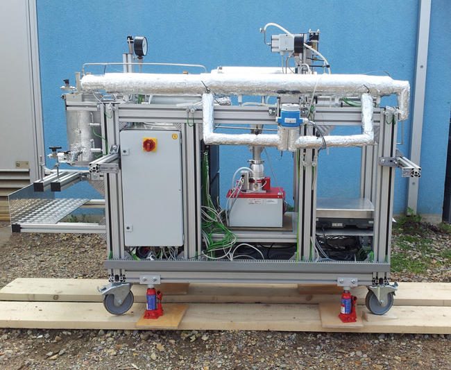 The test stand can be supplemented by further measurement apparatus to determine viscosity and density as well. Thus the mobile test stand is suitable for comprehensive measurement campaigns to determine the material sizes of thermal water and other liquids.