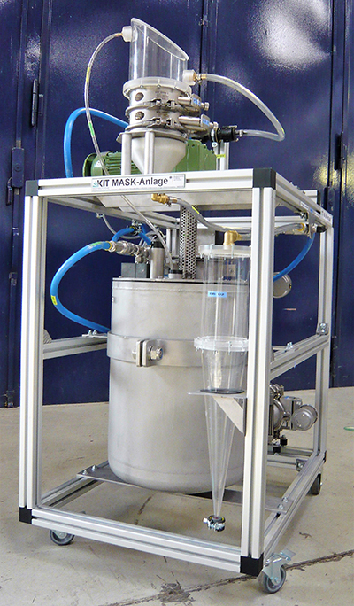 Demolishing nuclear plants requires an entire arsenal of specialised technical methods and machines. Especially the dissembling and disposal of the reactor pressure vessel and the appliances mounted in it is a considerable challenge, since these components have been exposed to neutron irradiation for years or even decades and, as a result of neutron activation, are now radioactive themselves. Therefore, the steel that has been used in constructing the plants can only be cut up via remote control. Here, water abrasive suspension (WAS) cutting, which has beneficial properties, is used. Garnet sand has been added to the ultra-high-pressure water jet as a fine granular, sharp-edged abrasive. During cutting, steel particles are also created, which results in large amounts of a radioactively contaminated abrasive-steel-granulate mix. Its disposal as secondary waste causes considerable costs. In order to reduce them, a method has already been developed at KIT that separates the steel particles from the abrasive with a magnet. However, the magnet can only catch steel particles from a certain minimum size on. Scientists at the KIT Institute of Technology and Management in Construction (TMB) and the KIT Institute for Nuclear Waste Disposal (INE) have elaborated the already established magnetic separation method in order to raise the separation degree. The abrasive-steel suspension is poured into a mixing vessel. In a preliminary treatment step, fine particles are filtered out with wet sifting. This already removes around 95 per cent of the radioactive steel particles, and they can be disposed of. The remaining suspension is fed into the magnetic separator, and the steel particles sticking to the magnet are separated and collected. The residual abrasive gathers in the mixing vessel and is used again for separation. All in all, secondary waste is reduced by up to 75 per cent.